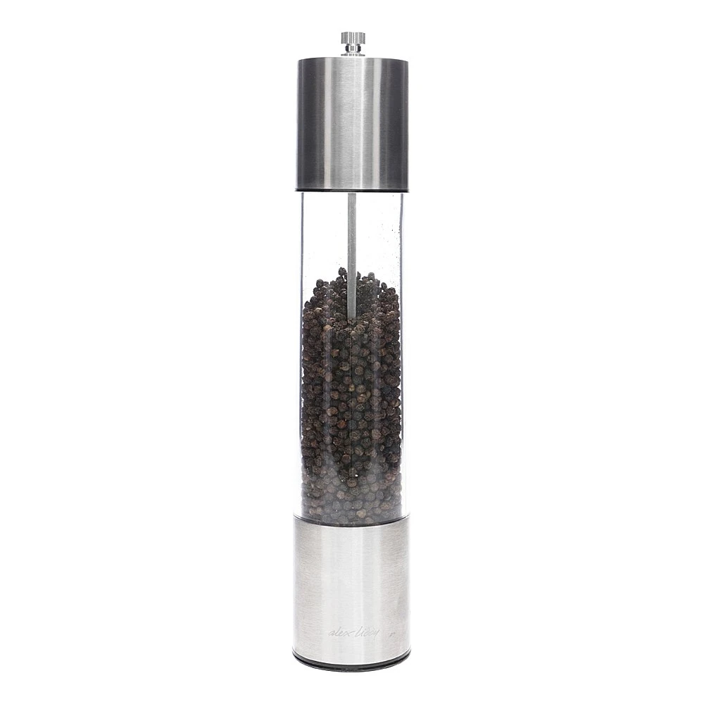 Add a touch of extra seasoning to your dinner with the stylish Alex Liddy Advance Pepper Grinder! Filled with black pepper corns, this grinder makes a delightful gift for housewarmings, birthdays and other special occasions. Designed in Australia by iconic homewares brand Alex Liddy, it features a sleek and sophisticated brushed stainless steel top and base and a clear acrylic body to show off its contents. Guaranteed to bring a touch of decadent style to your home dining aesthetic, this pepper grinder coordinates well with the Advance Salt Grinder in silver or rose gold. To care for this stylish dining accessory, simply wipe clean with a damp cloth.