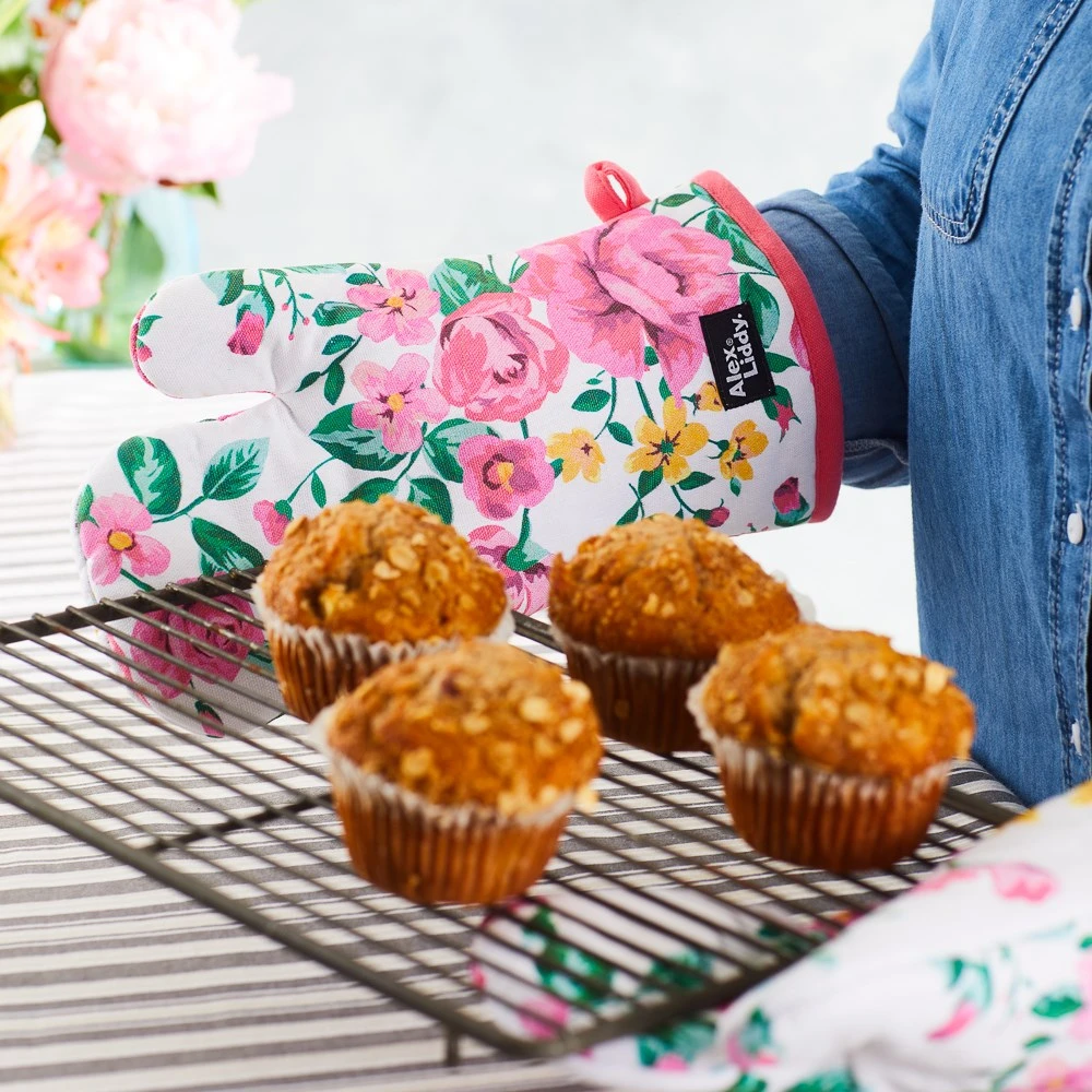 Look stylish and protect yourself while you cook with the Alex Liddy Fiore Oven Glove Set of 2.
