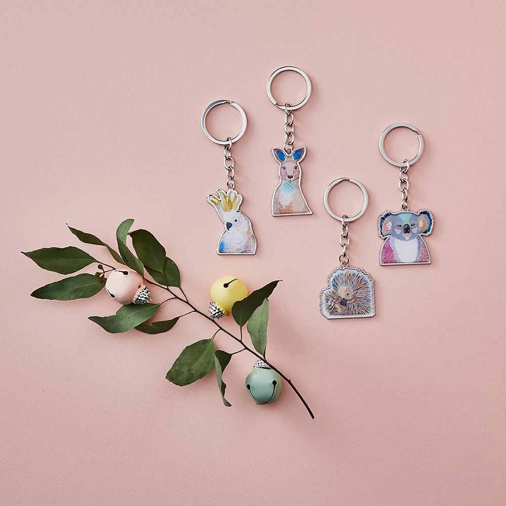 Price is for single item. Multiple items shown. Each sold separately. Subject to availability. Colours and styles may vary from time to time. Orders will be picked at random. The Alex Liddy Frankie B III Keychain will help you find your keys in an instant! Available in four different Australian designs, the Alex Liddy Frankie B III Keychain is perfect to attach to your keys, luggage accessories and personal accessories! The Alex Liddy Frankie B III Keychain was designed in Australia as part of the third series collaboration between Alex Liddy and Frankie B Design. Beautifully packed and presented, the Alex Liddy Frankie B III Keychain makes an excellent gift for housewarmings, birthdays, and other special occasions!