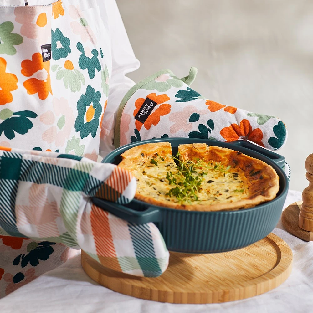 With a reversible print exterior and ultra-comfortable quilted interior, you will tick off function and style at the same time. Made of 100% cotton, the Alex Liddy Harley II Oven Gloves are soft to touch and wash beautifully. The practicality of the oven gloves is unmatched with a polyester filled glove to keep your hands protected from hot surfaces and a hanging loop for accessibility. The Alex Liddy Harley II collection is a stylish and functional homewares collection with gorgeously curated designs of playful florals and gingham in navy, soft pink, mint green, and burnt orange. The Harley II is the second series of the Harley collection offering new and improved variety, innovations, and designs. This collection is beautifully packaged and ready for gifting, making it the perfect choice for birthdays and other special occasions.