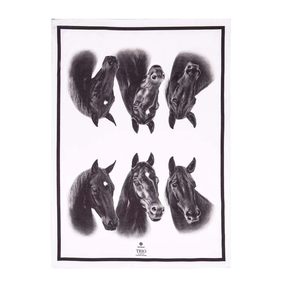 Infuse your kitchen space with the magnificent artwork of the Lithuanian master drybrush painter Danguole Serstinskaja. With breathtaking beauty, the Ashdene Trio Kitchen Towel Black will inspire your everyday movement around the kitchen. Crafted from 100% cotton, the resilient Ashdene Trio Kitchen Towel Black offers a generous size that’s perfect for wiping up spills, drying dishes and keeping the area tidy. On its clean white background, three regal black horses are rendered in hyper-realistic greyscale. Complement the washing machine safe Ashdene Trio Kitchen Towel Black with matching pieces from the exquisite Trio collection.