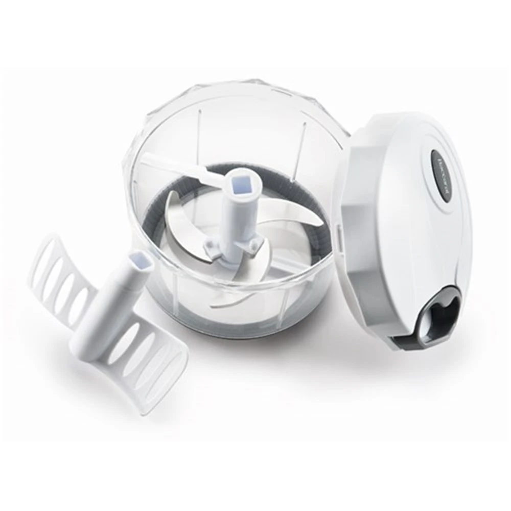 Baccarat Prepare Deluxe Pull Chopper evenly chops, fruits, vegetables, herbs and nuts without a chopping board. Featuring a mixing blade, the chopper is perfect for fixing up omelettes, dips, milk shakes, salad dressing and sauces. With a sharp stainless steel tri-blade, the chopper is also great for salsa, cooked vegetables, baby food, herbs, nuts and whole onions. The Baccarat Prepare Deluxe Pull Chopper works through the pulling device, the number of pulls controls how fine the chop will be from very coarse to fine. The Baccarat Prepare Deluxe Pull Chopper also features a non-slip base, durable plastic container and lid that can be used for refrigerating chopped foods.