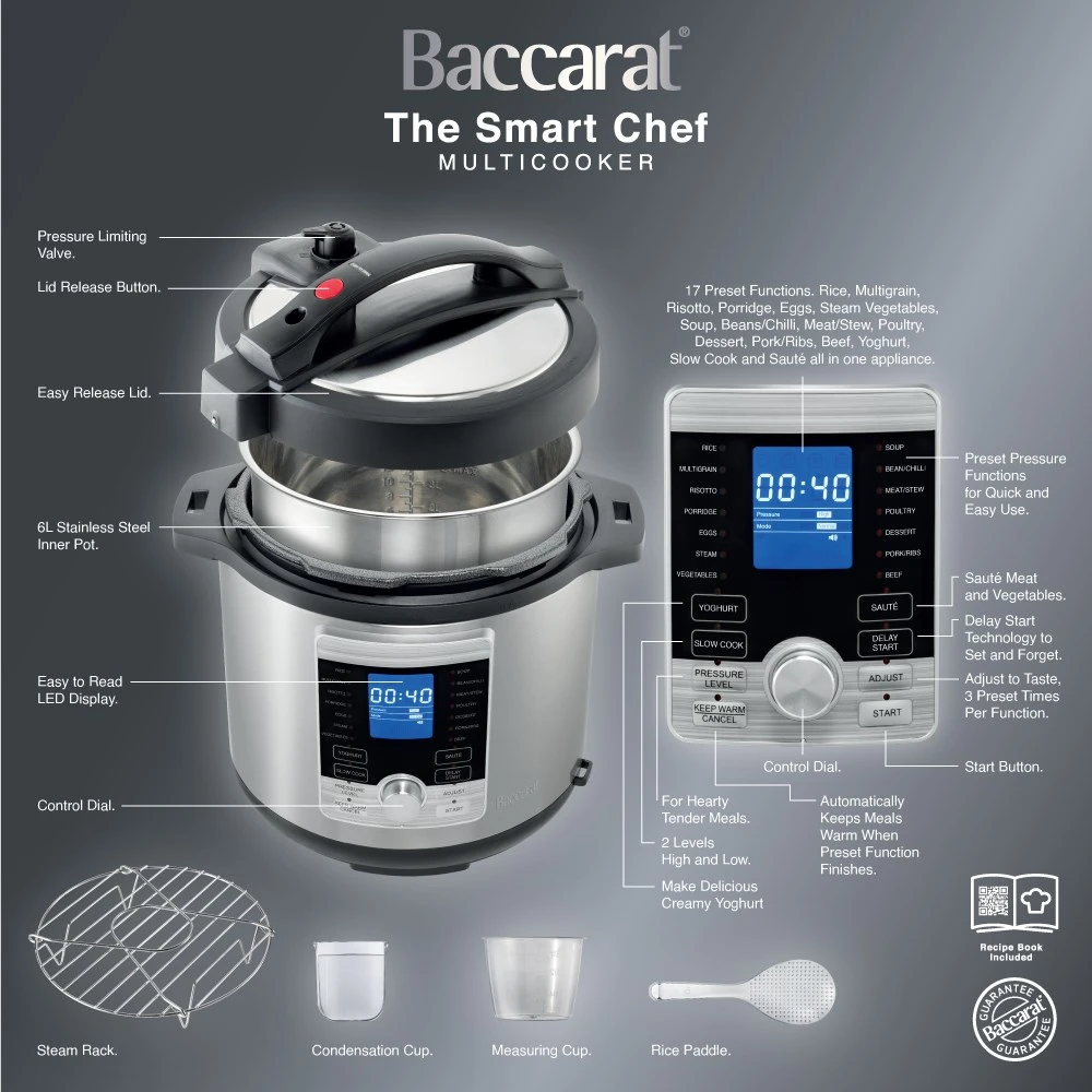 - Generous 6L stainless steel cooking pot to serve up to 4-6 people