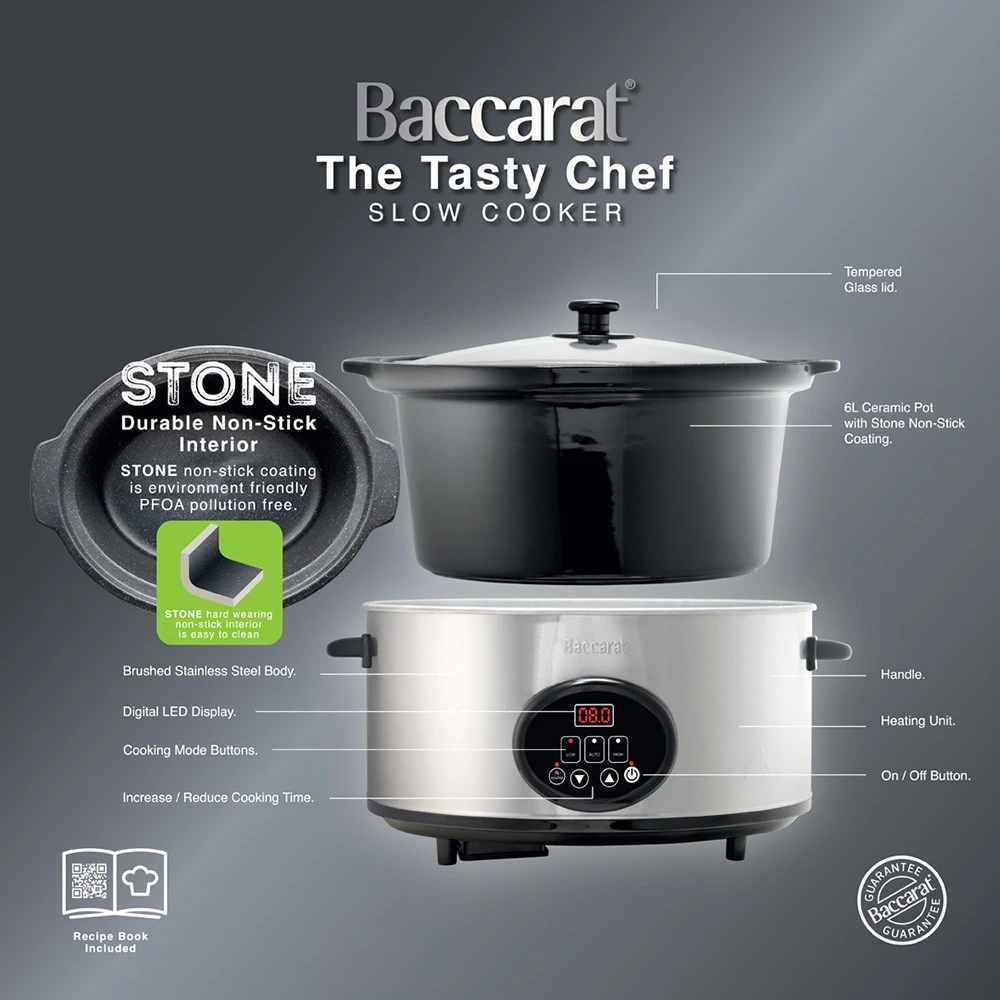 - Create delicious tasting meals at the touch of a button with Baccarat® The Tasty Chef 6.5L Slow Cooker.