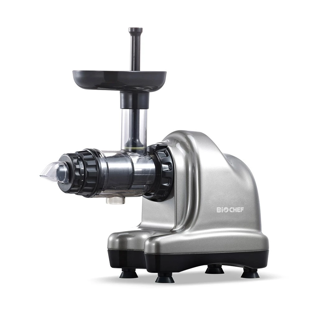 Start your day with delicious, healthy juices with the BioChef Axis Cold Press Juicer. Using cold press methods to cut through fruits, vegetables, greens, and more the BioChef Axis Juicer produces as much juice as possible while maintaining the natural minerals, vitamins, and enzymes that results in healthier, tastier juice. Made with Ultum Tough materials and fitted with a wide chute that easily accommodates whole fruit and veg, the BioChef Axis Juicer is built to last. Also fitted with a pulp adjustment nozzle, you can enjoy your fresh juices exactly as you prefer them. Designed for versatility, the BioChef Axis Juicer also makes quick work of nut butters, nut milks, purees, sorbet, and more!