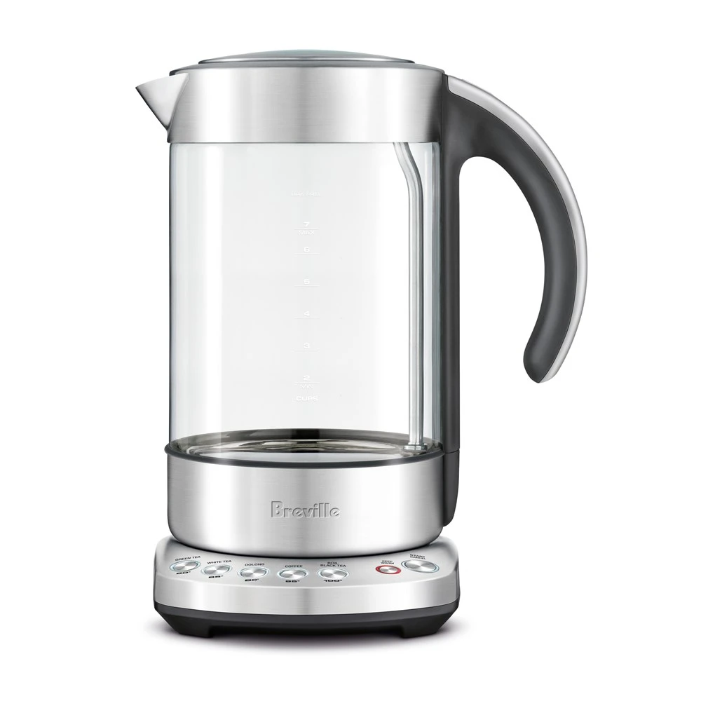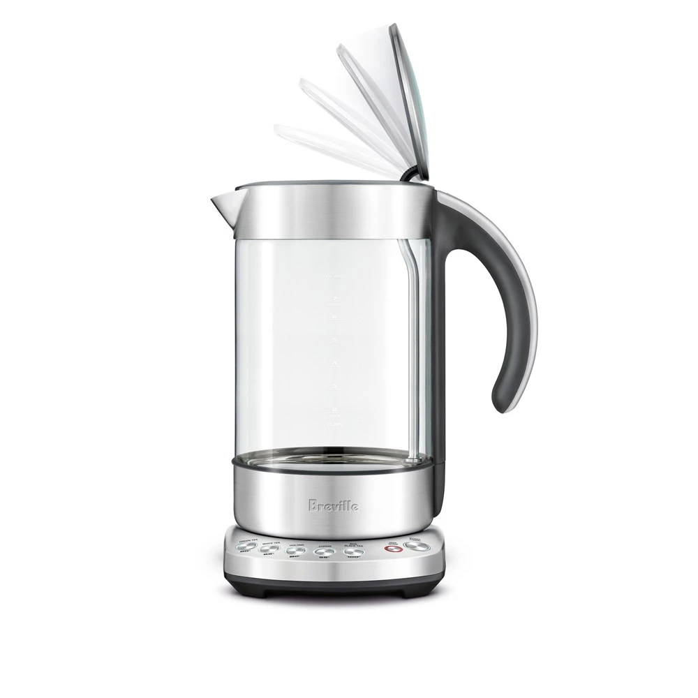 Relax to a hot cuppa made with the Breville Smart Kettle Pure. This stylish kettle is constructed from premium quality German glass, providing a modern look to your kitchen as your watch the water boil. The Breville Smart Kettle also features a soft-open lid to gently stagger the release of potentially harmful steam and prevent hot water splash back, while the 5 pre-set temperature settings boil water to the exact temperature required to brew your favourite tea and coffee varietals – choose from black, green, white and ooling teas and coffee. The ergonomic design of the full-length handle allows for a superior grip and handling, while the 360-degree swivel base lets you grip the Breville Smart Kettle from any direction, left or right-handed.