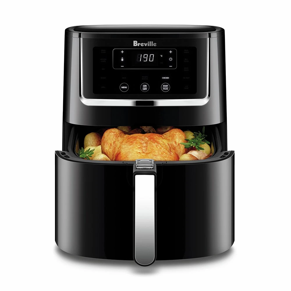 Enjoy your favourite fried foods with little or no added oil with The Air Fryer Chefâ„¢ from Breville! This incredible cooking appliance uses hot air to fry your favourite foods with little oils, allowing for delectable and nutrient-dense meals. Designed with the whole family in mind. The Air Fryer Chefâ„¢ comes with an Extra-large and deep cooking basket to cook up to 3kg of your favourite foods. Suitable to cook a roast dinner or deliciously crisp up to 2 bags (1kg) of fries in one go. The Air Fryer Chefâ„¢ features 11 pre-set cooking functions, all designed to make life easier in the kitchen. Air fry favourites like fresh chips, roast a whole chicken, dehydrate your own fruits, vegetables, herbs, and much more. Simple to use and packed with so many cooking functions, the Air Fryer Chefâ„¢ will become your go to kitchen appliance for every meal. 12 Months Warranty. Wipe down stand with a damp cloth. .