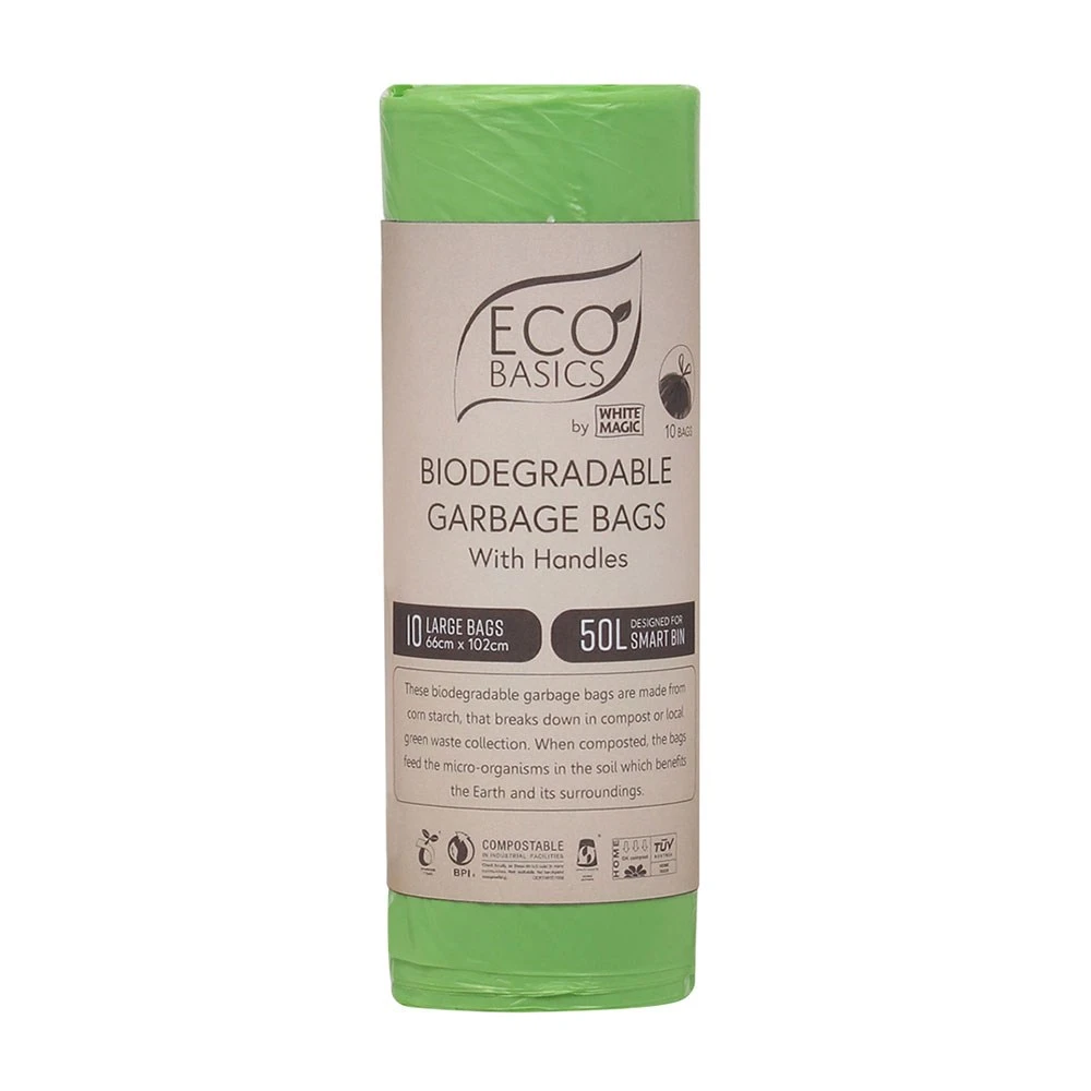 Dispose of your waste the environmentally friendly way with Eco Basics 10 Piece Biodegradable Garbage Bags Set! Designed to fit any 50 litre bin, these garbage bags hold a generous capacity. They are ultra-durable in design and retain the same quality and strength as plastic bags. Constructed from totally degradable plastic additive, these bags are the ultimate eco-friendly alternative to plastic bags as they are designed to break down when exposed to the environment. Get rid of your rubbish in environmentally friendly fashion with the ultra-tough and environmentally friendly Eco Basics 10 Piece Biodegradable Garbage Bags Set!