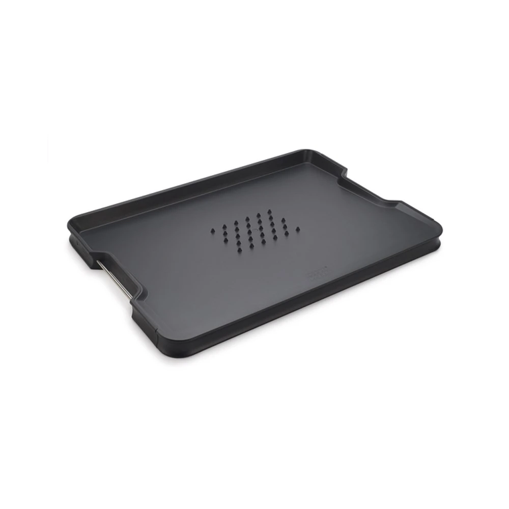 The double-sided, multi-function Joseph Joseph Cut&Carve Plus Large Black transforms food prep into a treat