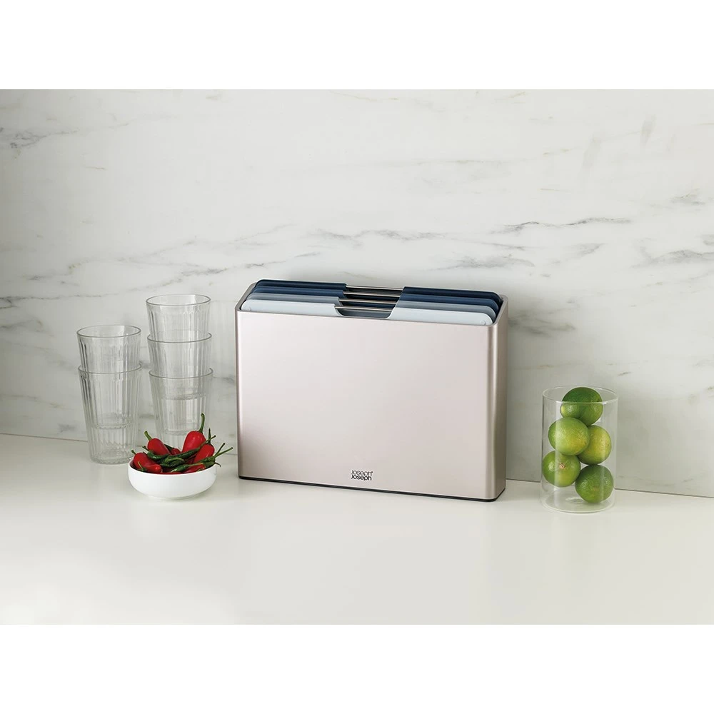 Prepare your meals in style with the beautifully designed Joseph Joseph Folio 4 Piece Chopping Board Set Sky