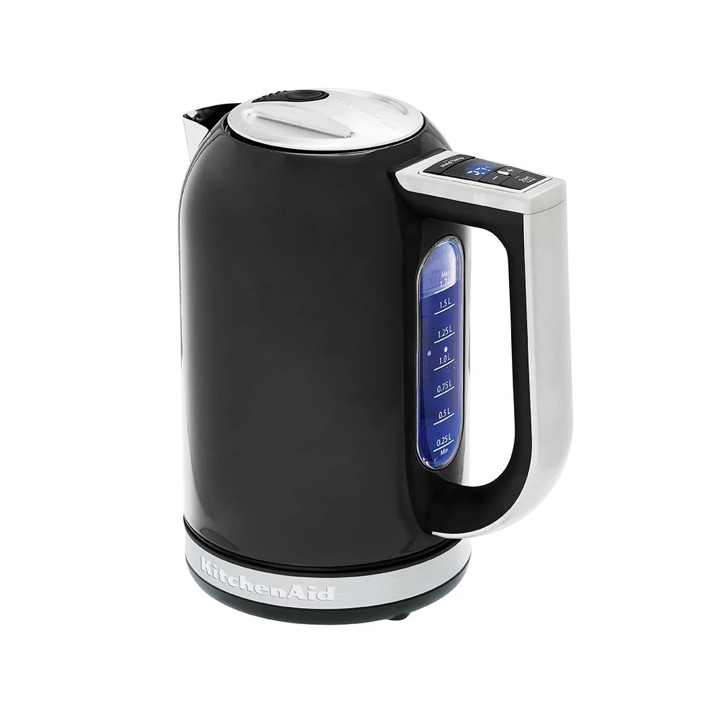 With a sleek and sophisticated design, the KitchenAid Artisan Kettle in Onyx Black is a stunning looking kitchen appliance. It matches beautifully with other KitchenAid items and its functionality will make owning it a dream. Tea lovers will find this kettle particularly pleasing since you can program in a temperature between 50C and 100C. With a water temperature setting it makes brewing everything from delicate white tea to fragrant fruit tisanes easy. Temperature is set by using the controls on the kettle handle and viewing the chosen selection on the built-in blue LCD display. The illuminated display also has the ability to show a digital temperature reading of the water inside. If you have added batteries, you can check the temperature even when the kettle is not on the base. Taking a maximum of 1.7L and a minimum of 250ml, it is appropriate for individual or group use. The KitchenAid Artisan Kettle in Onyx Black also has a useful keep warm feature that maintains the desired water temperature for up to 30 minutes. The timeless design coupled with modern technology means this kettle will soon become one of your favourite kitchen appliances.