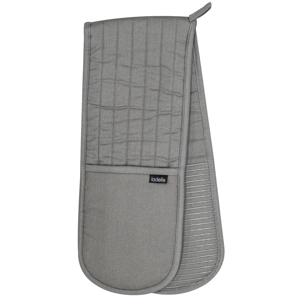 Breeze through food prep with the helping hand of the Ladelle Lennox Double Oven Mitt Gum. Crafted from quality cotton, Ladelle Lennox Double Oven Mitt Gum is a highly durable accessory for a busy, modern kitchen. In a classic, versatile grey colour, it features chic herringbone trims that incorporate a hanging loop for effortless storage. The mitt, designed to help you safely transport hot trays, pans and dishes in and out of the oven, is quilted for extra insulation and benefits from silicone strips for an enhanced grip. For fuss-free maintenance, simply toss the mitt in the washing machine as required. Tie your kitchen aesthetic together by pairing the Ladelle Lennox Double Oven Mitt Gum with other stylish essentials from the Lennox collection.