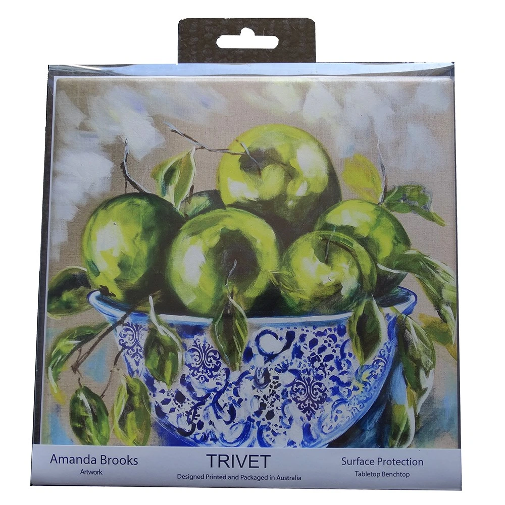 Appreciate a true work of art while preserving your work surfaces with the stunning Lilli Rock Apple Harvest Trivet