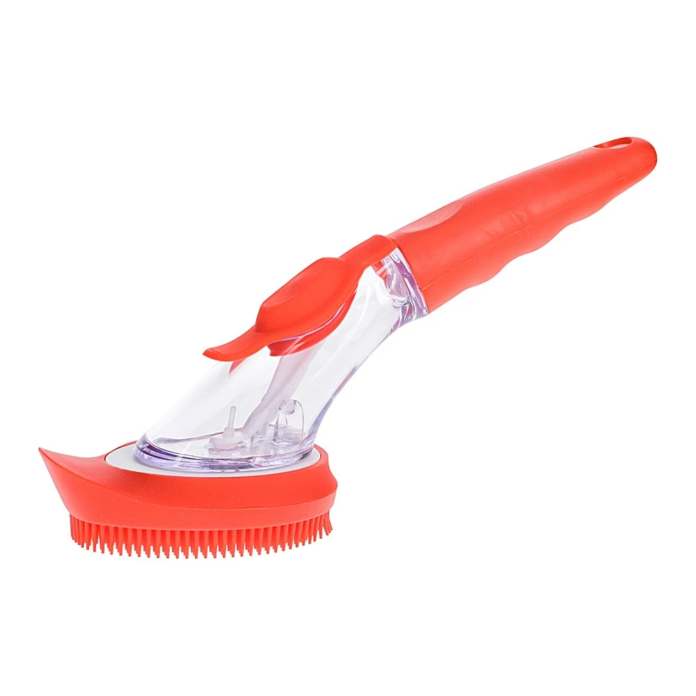 Clean your dirty dishes to a sparkling finish with the eco-friendly Scruba-Dub Silicone Dish Brush with Soap Dispenser! Designed to make washing up after dinner less of a chore, this innovative cleaning tool comes equipped with a convenient built-in soap dispenser. To use, simply open the lid on the handle to fill with detergent and press the button to release onto your dirty dishes as you clean. It is designed with an ultra-comfortable grip for easy use and boasts a brilliant ruby red colour scheme to add a pop of vibrance to your kitchen. Innovative in design, the Scruba-Dub Dish Brush features flexible silicone bristles that are ultra-hygienic and will not harbour bacteria like regular sponges. The Scruba-Dub Dish Brush with Soap Dispenser is a wonderful eco-friendly alternative to disposable sponges and is the ultimate accessory for making short work of your dirty dishes.