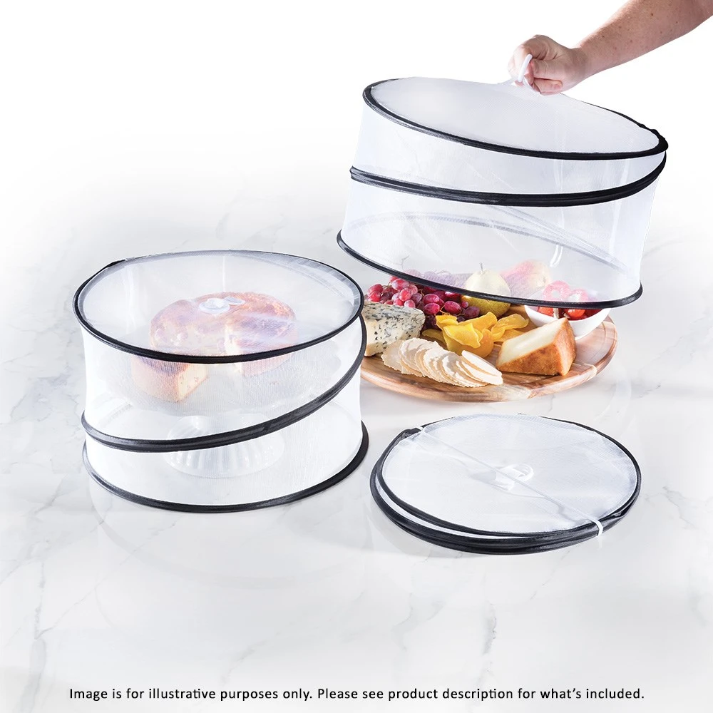 - Set of 3 mesh food covers to keep your table setting fresh for serving