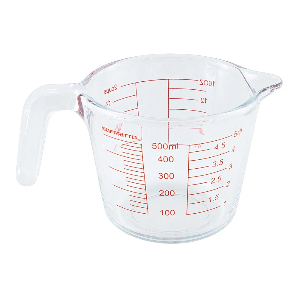 Measure out accurate portions of your liquid ingredients with the highly durable borosilicate glass Soffritto Pure Glass Measuring Jug with a fill capacity of 500ml!