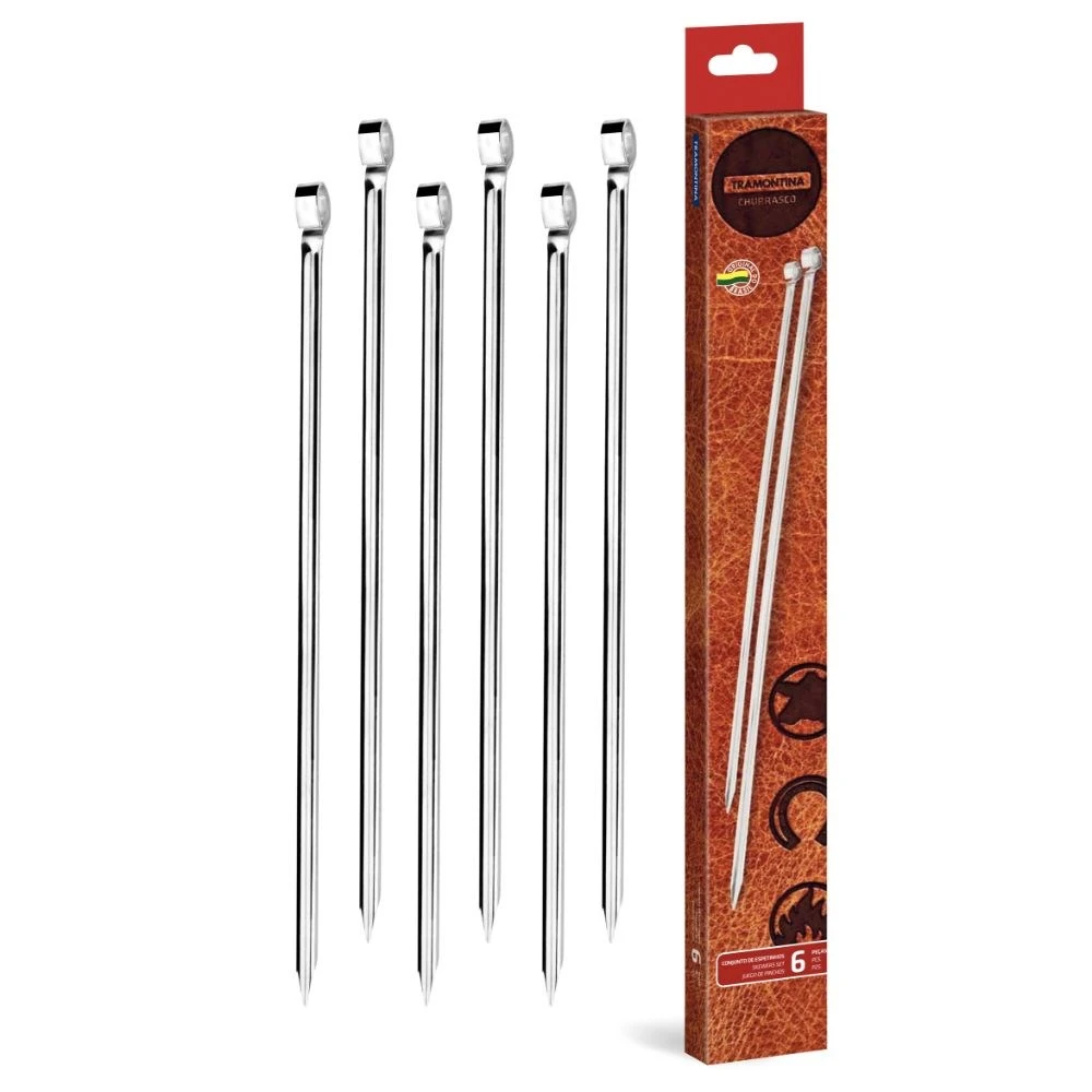 Grill up an assortment of meat cuts and crisp summer veggies quickly and evenly with the Tramontina Churrasco BBQ Skewers. Crafted from the finest quality stainless steel, the Tramontina Churrasco BBQ Skewers feature a classic all-steel design with a length of 30cm, making them ideal for layering with tender beef and chicken breast and cooking outside on the BBQ or inside on the stove. The perfect way to ensure meats and veggies are cooked thoroughly at the same time, the Tramontina BBQ Skewers are an essential for every grill master. Included in the set are 6 x skewers.