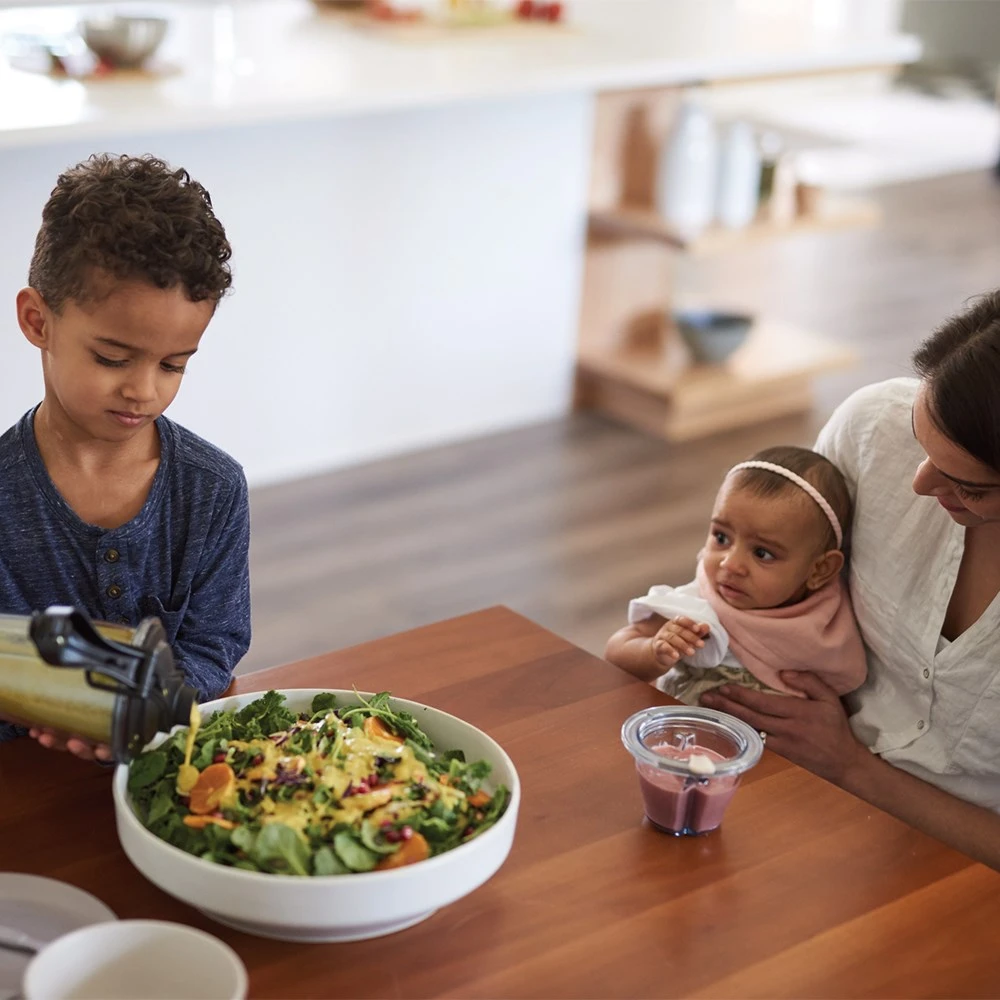 - Kit includes 600ml blending cup, 225ml blending bowl, blade base attachment and spill-proof lids