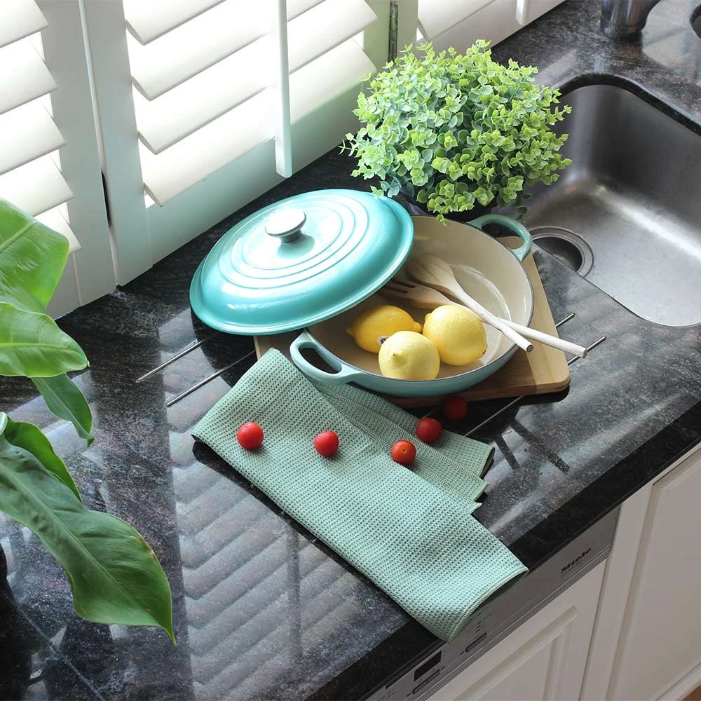 Quickly and effectively dry dishes and spills with the White Magic Eco Cloth Tea Towel. This essential kitchen textile is made with White Magic’s super-absorbent Eco Cloth microfibre and is capable of absorbing up to 4 times more than standard cotton tea towels. Lightweight and incredibly soft, the White Magic Eco Cloth Tea Towel features a fine waffle knit design that helps to trap fluids, drying your cookware, dinnerware, cutlery, and glassware up to 3 times faster than cotton or linen and without leaving behind any lint or streaks. Machine washable, the White Magic Eco Cloth Tea Towel can be reused again and again.